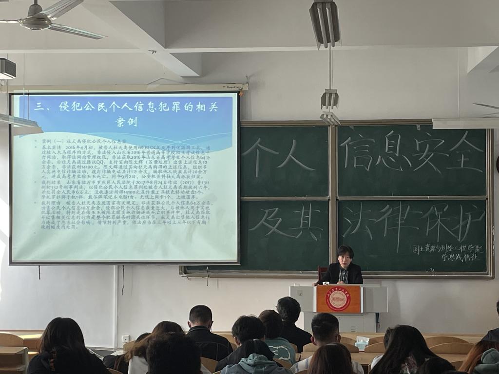 2021年4月8日下午2:30,山东省高级人民法院辛丽英法官来我院做“个人信息安全及其法律保护”学术报告。报告由党总支书记孙承运主持,我院辅导员、全体学生党员、各班主要班干部和大学生社团“学思践悟社”骨干成员参加。