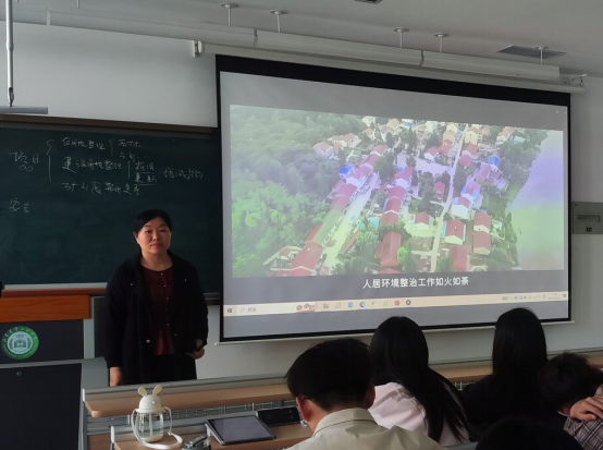 在讲授全域土地综合整治技术路径时,王老师以我国全域土地综合整治发展较好的浙江省、广东省和湖北省开展的国家级试点项目为例,为同学们介绍了全域土地综合整治的工作流程、主要工作成果,并给同学们以视频形式直观展示了湖北省孝南区朱湖全域国土综合整治国家级试点项目的整体情况。通过本次报告,同学们了解了我国全域土地综合整治开展的总体情况,对行业发展前景有了更深刻的体会。