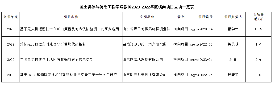 国土资源与测绘工程学院教师2020-2022年度横向项目立项一览表