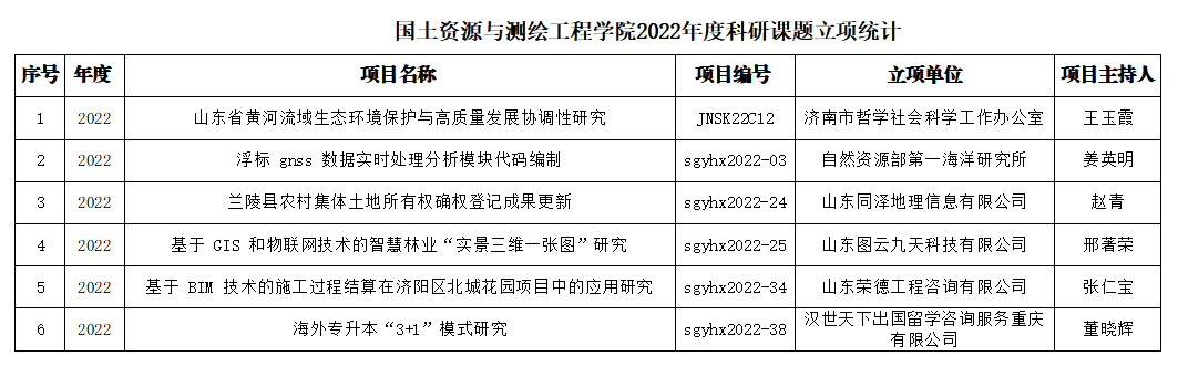 国土资源与测绘工程学院2022年度科研课题立项统计表