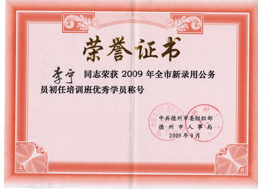 2008年7月进入乐陵市房产管理局工作;