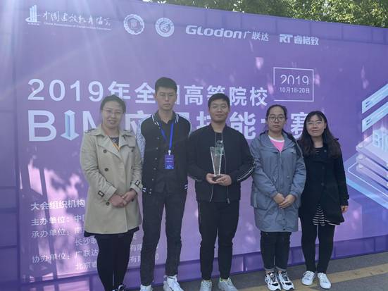2019年10月18日至20日,2019年全国高等院校BIM应用技能大赛在南京和长沙成功举办。本次大赛由中国建设教育协会主办,323所高校,2700余名师生参加。经过大赛组委会专家评阅,我院学生侯守壮、丁同和徐辰雨组成的团队获得一等奖。