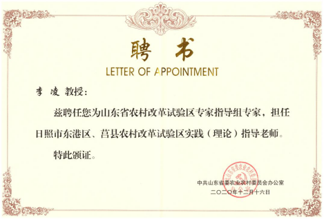 我院院长李凌教授受聘山东省农村改革试验区专家指导组专家