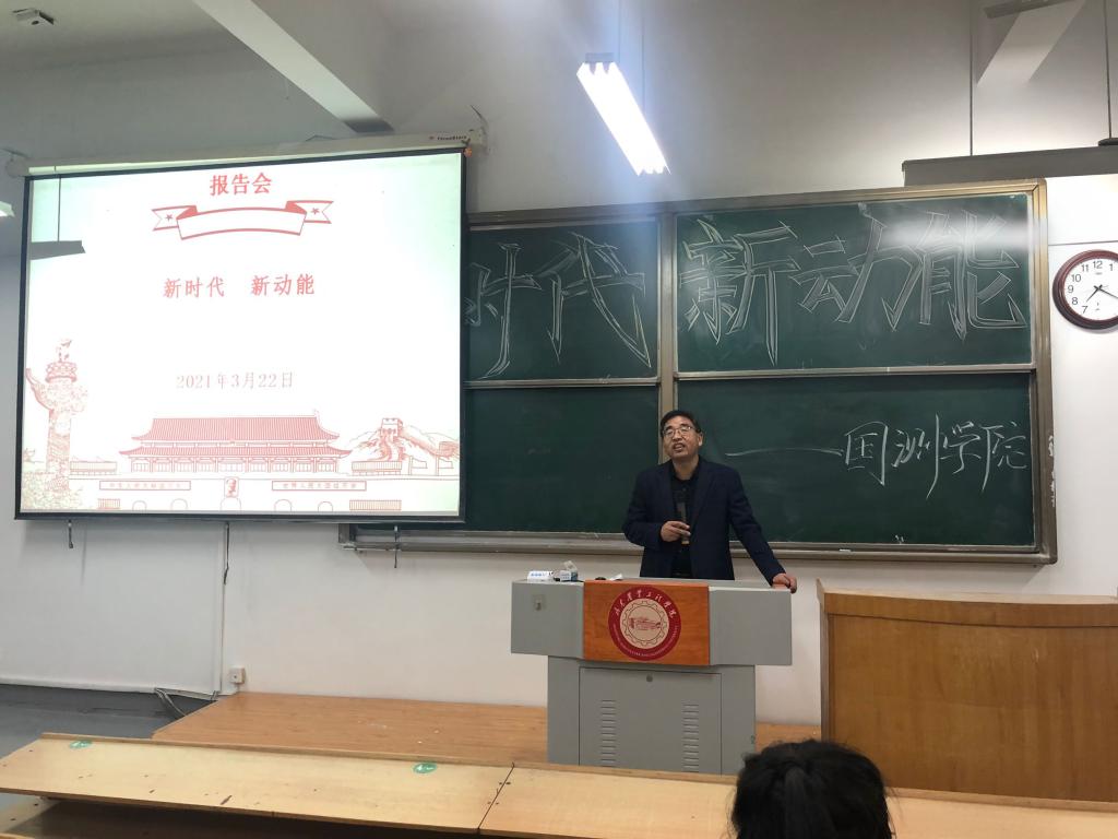 2021年3月22日19:00,我院在济北校区5-3阶梯教室,举办“新时代新动能”学术报告会,报告人孙承运给参加报告会的学生,讲解了新时代的特点,分享了关于新动能的前沿探讨,提出“责任、使命、担当”“资源、机会、匹配”“创新、创造、创举”等关于新动能的新认识,勉励学生不断提升工作“预见力、组织力、执行力、成就力”,通过“努力、合力、借力”做好工作,提升水平,开创新格局。