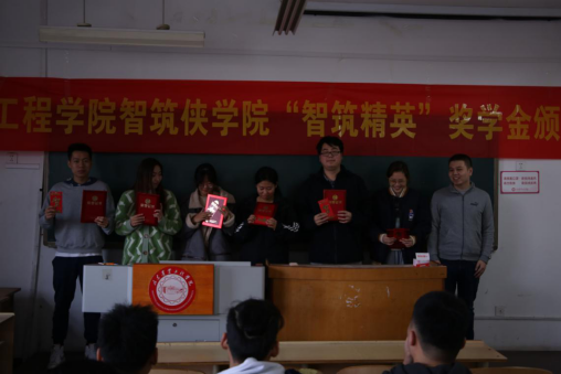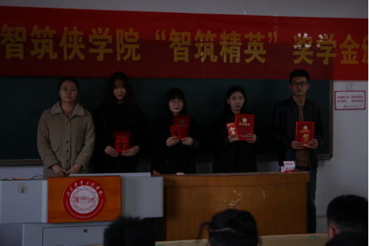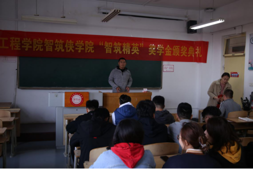 本次“智筑精英”奖学金由智筑侠科技有限公司提供,颁奖典礼由崔凯老师主持。崔老师首先肯定了过去一年的班级工作,然后对获得此次奖学金的12名同学表示祝贺,同时鼓励他们要时刻秉承“厚德,自强,求是,笃行”的校训,练就过硬本领,将来奉献社会,造福人民。