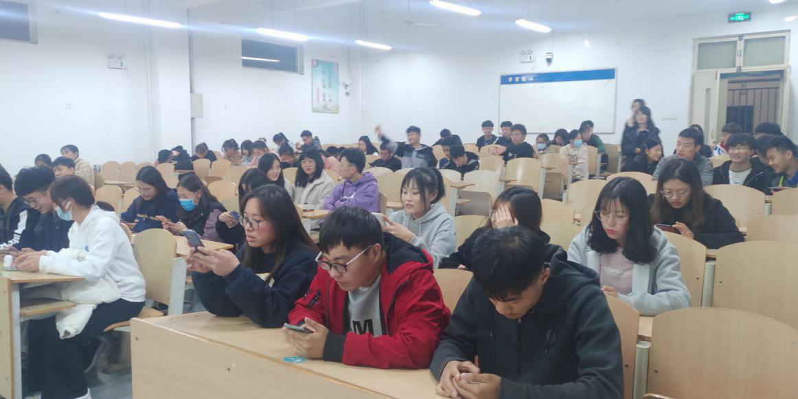 比赛开始,以班为单位组成参赛队伍,每组三人,按抽签顺序。题目以PPT方式展示在大屏幕及群课堂中,参赛选手在题目出现时开始答题,选择题限时15秒,判断题限时10秒,填空题限时30秒,工作人员计时,锣声响起答题结束。每组成员在群课堂中均可作答,将答案以评论的方式发送,每组答案以评论中出现的第一个成员的答案为此组答案。分值为一题一分制,六轮答题后,累分最高的六组进入决赛。本着友谊第一、比赛第二的原则,现场气氛被推向一次又一次高潮。