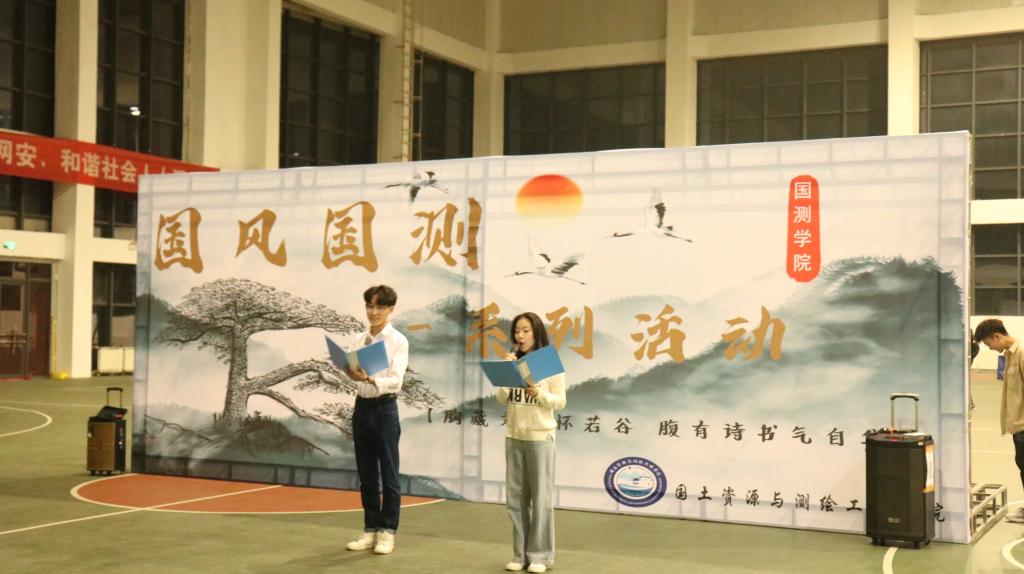 中间穿插唱歌跳舞等精彩节目点燃全场,节目的演出大大增加了学生们的兴致,为国风国测系列活动的开展提供了动力。