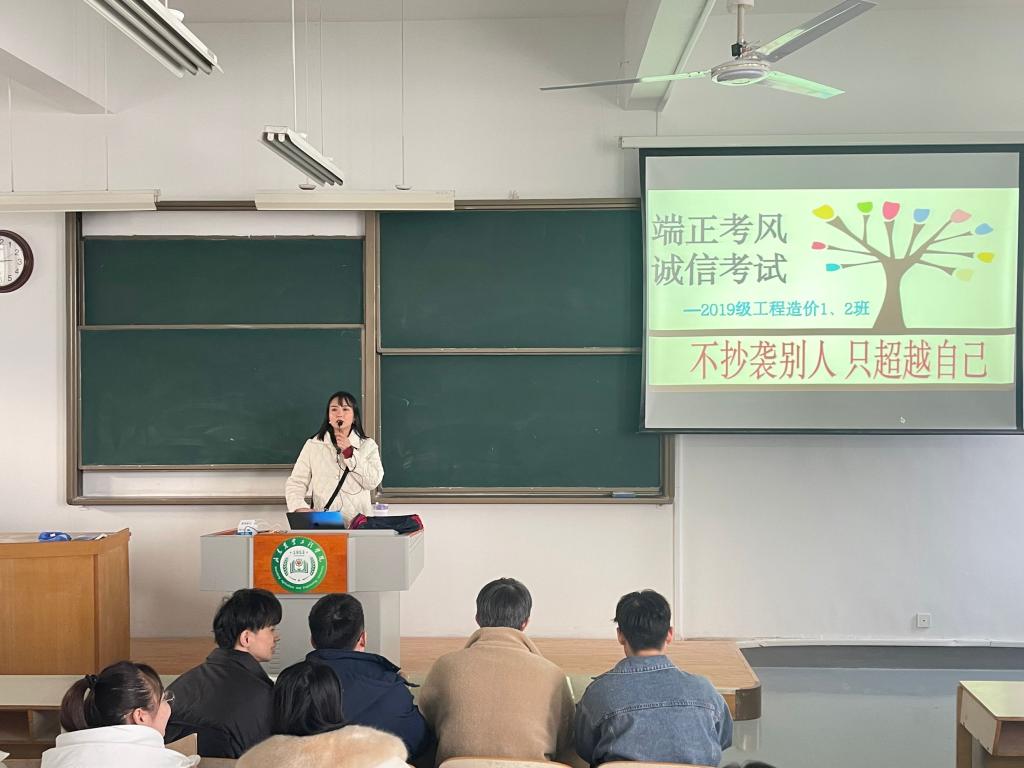 为树立学生诚信为本的道德观念,营造积极向上的考试气氛,19级工程造价班主任高杰老师在6-3教室举行了“诚信考试”动员大会。会上,由高杰老师带领同学们学习了关于考试的相关规章制度,要求学生杜绝考试作弊现象,鼓励同学们认真复习,严肃考风考纪。通过动员大会,同学们明白了诚信考试的利害关系,相信同学们会带着诚信在考试中发挥最佳水平,取得理想成绩!