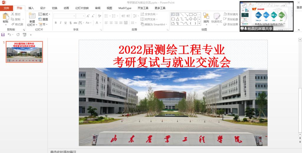 2022年3月21日,测绘工程专业举办“2022届测绘工程专业考研复试与就业”线上交流会。会议由测绘科学与工程教研室主任仇立成老师主持,参会人员有遥感教研室主任董晶晶老师、测绘教研室杨晨晨老师、周晓敏老师以及部分2022届测绘工程专业学生。