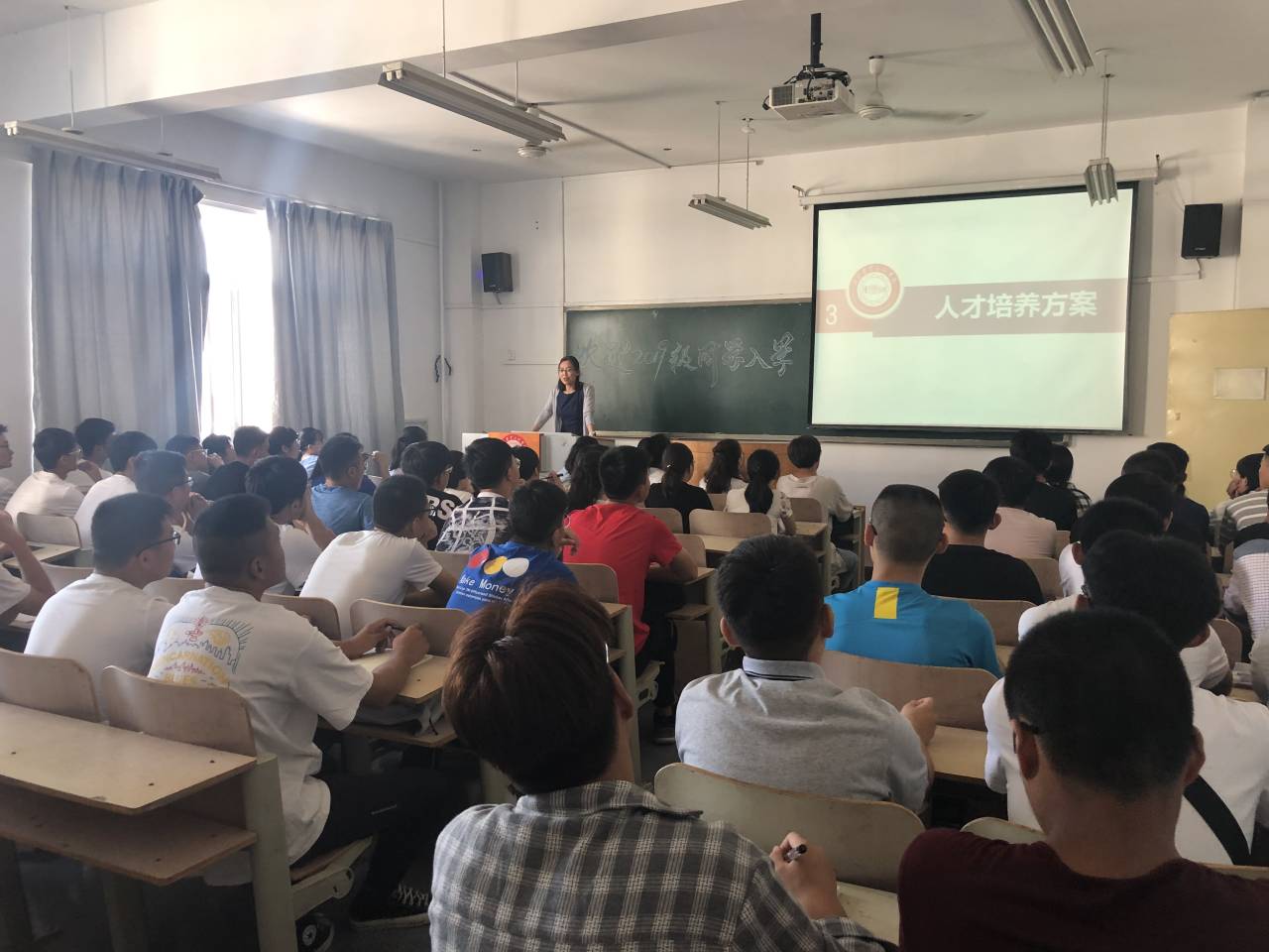 根据学校统一安排,结合我院实际,2019年8月31日,开展2019级新生入学教育。在专业教育中,各教研室先对学校和我院的基本情况对新生作了介绍,然后针对各自专业的人才培养方案做了详细剖析,使新生了解了各自专业的专业行业背景、人才培养目标、课程结构以及毕业去向等。同时进行了入学思政教育,将高中教育与大学教育的不同,尤其是大学教育在衔接高中教育、未来教育和进入社会工作中所承担的责任,以及大学生在高中、大学、未来教育和进入社会工作各阶段所应扮演的正确角色,与同学们进行了较深入地交流,并结合各自专业对思政教育进一步加以贯彻,从与同学们的现场交流状况和后面的反映来看,这种专业教育形式确实起到了不错的效果。