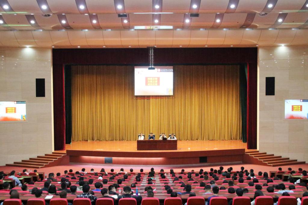 2020年10月11日19点我院在北校区学术报告厅召开了2020级新生入学教育大会。党总支书记孙承运,学生党支部书记田则军,2020级辅导员杨晓彤、侯成磊老师及2020级全体新生参加活动,会议由田则军老师主持。