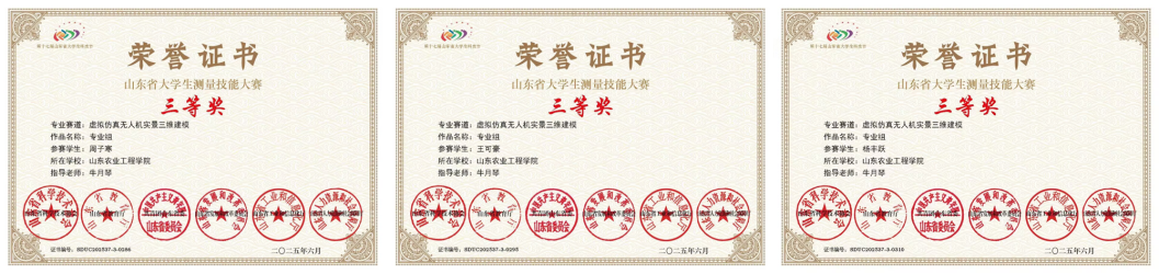 第十七届山东省大学生科技节——第十九届“南方测绘杯”山东省大学生测量技能大赛暨2025年全国大学生测绘学科创新创业大赛山东赛区选拔赛于2025年5月16-17日、5月23日—24日顺利举行。437ccm必赢国际官网学子在“虚拟仿真无人机实景三维建模”赛道中表现优异,共斩获二等奖1项、三等奖9项,展现了学校在无人机测绘技术领域的教学实力和学生的创新能力。
