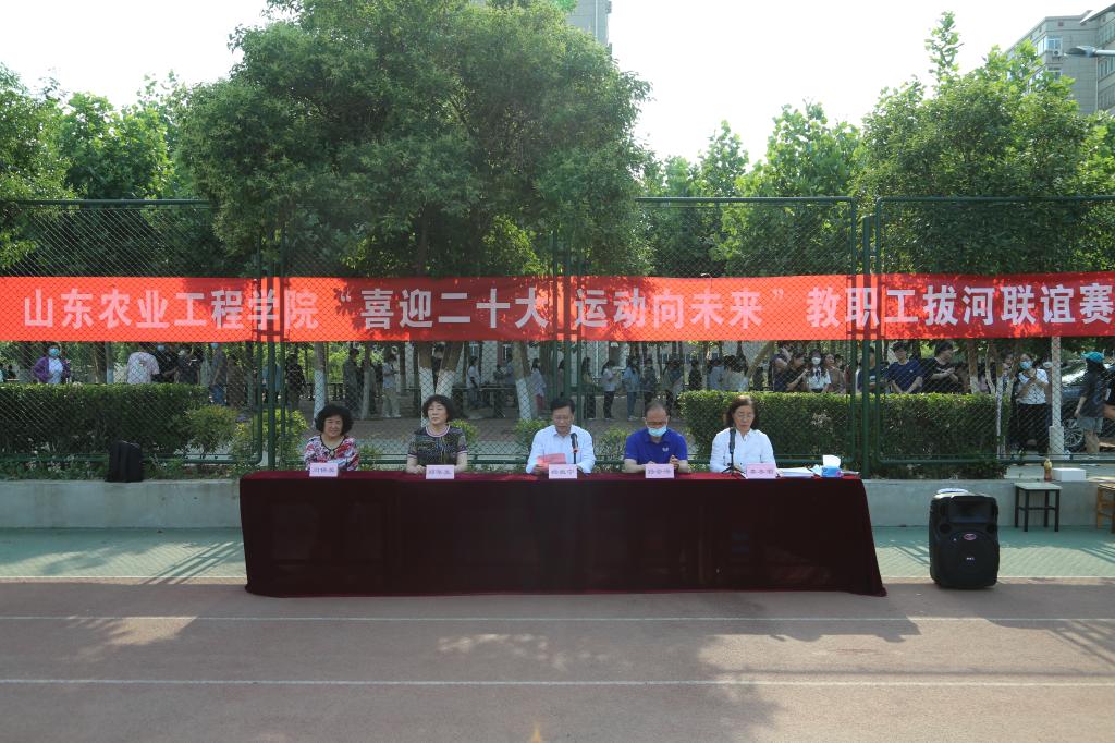 5月20日,必赢在济南校区体育场成功举办“喜迎二十大 运动向未来”教职工拔河联谊赛。校党委委员、副校长杨振宁,党委委员、党委组织部部长孙会海,党委委员、党委宣传部部长郑华美出席本次活动。来自机关处室和教学单位的14支代表队参加了此次比赛。