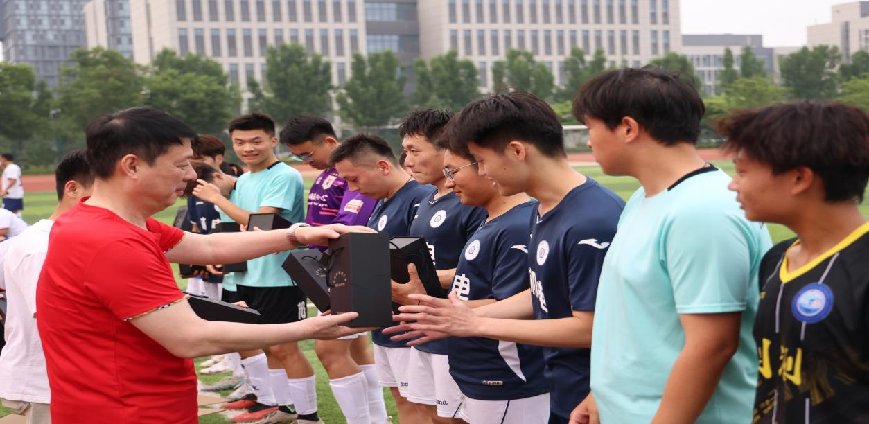 比赛结束后,党委书记张鸿波向学生联队发放了由教职工足球队准备的礼品。学校将以本次师生足球友谊赛的举行为重要契机,充分发挥教职工足球协会、羽毛球协会等校内体育组织的功能作用,举办各种形式的体育活动,丰富广大教职工业余文化体育生活,促进内外交流,增进了解和情谊,展示教职工积极乐观、奋发昂扬、热爱生活的精神风貌,为学校事业高质量发展增添新活力。