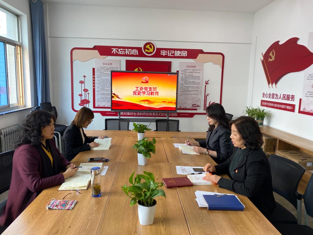 3月31日下午,工会党支部在机关党委党员活动室召开党史学习教育,由支部书记李冬菊同志主持,全体党员参加,田兆清列席。