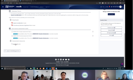 会议首先由Phoebe女士汇报了目前《食品营养与检测》中澳合作专业澳方线上课程的开发与进展情况,提出此次线上课程采用Moodle在线教育平台,经过澳大利亚联邦大学等多家高校的联合开发,平台的专业课程目前已开发完备,待通过澳大利亚技能质量管理署(Australian Skills Quality Authority,ASQA)的审批后即可投入使用。