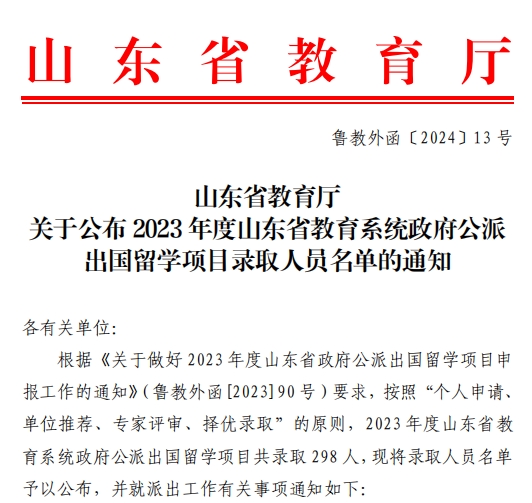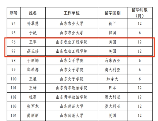 近日,2023年度山东省政府公派出国留学项目录取人员名单公布,按照“个人申请、单位推荐、专家评审、择优录取”的原则,本年度共录取298人,其中必赢信息工程与科学学院的王翠、高玉珍2名教师获批公派出国访学项目资助。