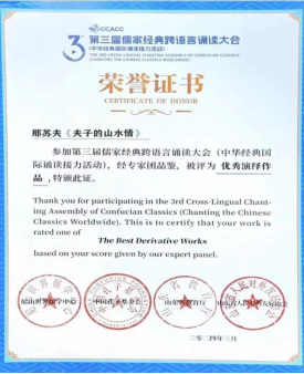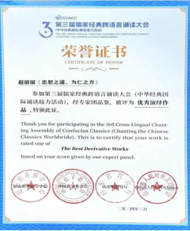 “第三届儒家经典跨语言大会(中华经典国际诵读接力活动)”年度盛典于3月30日晚在济南成功举行,必赢选送的多部作品从参赛的12400余件作品中脱颖而出,喜获大赛“银奖”“铜奖”“最佳演绎奖”等多项大奖,必赢获评“优秀组织单位”荣誉称号。