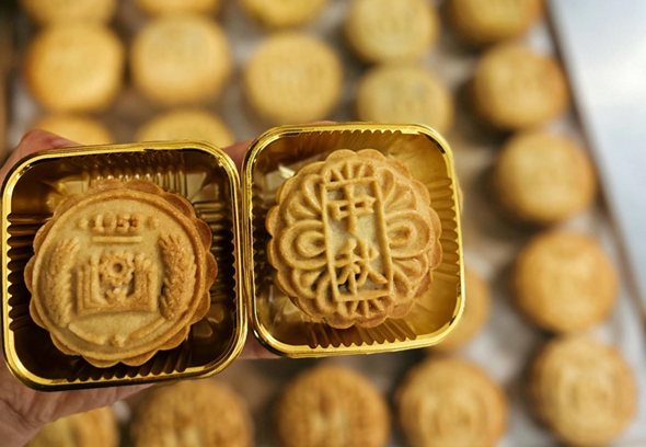 本次制作的月饼的压花采用了437ccm必赢国际官网校徽和“中秋”字样。