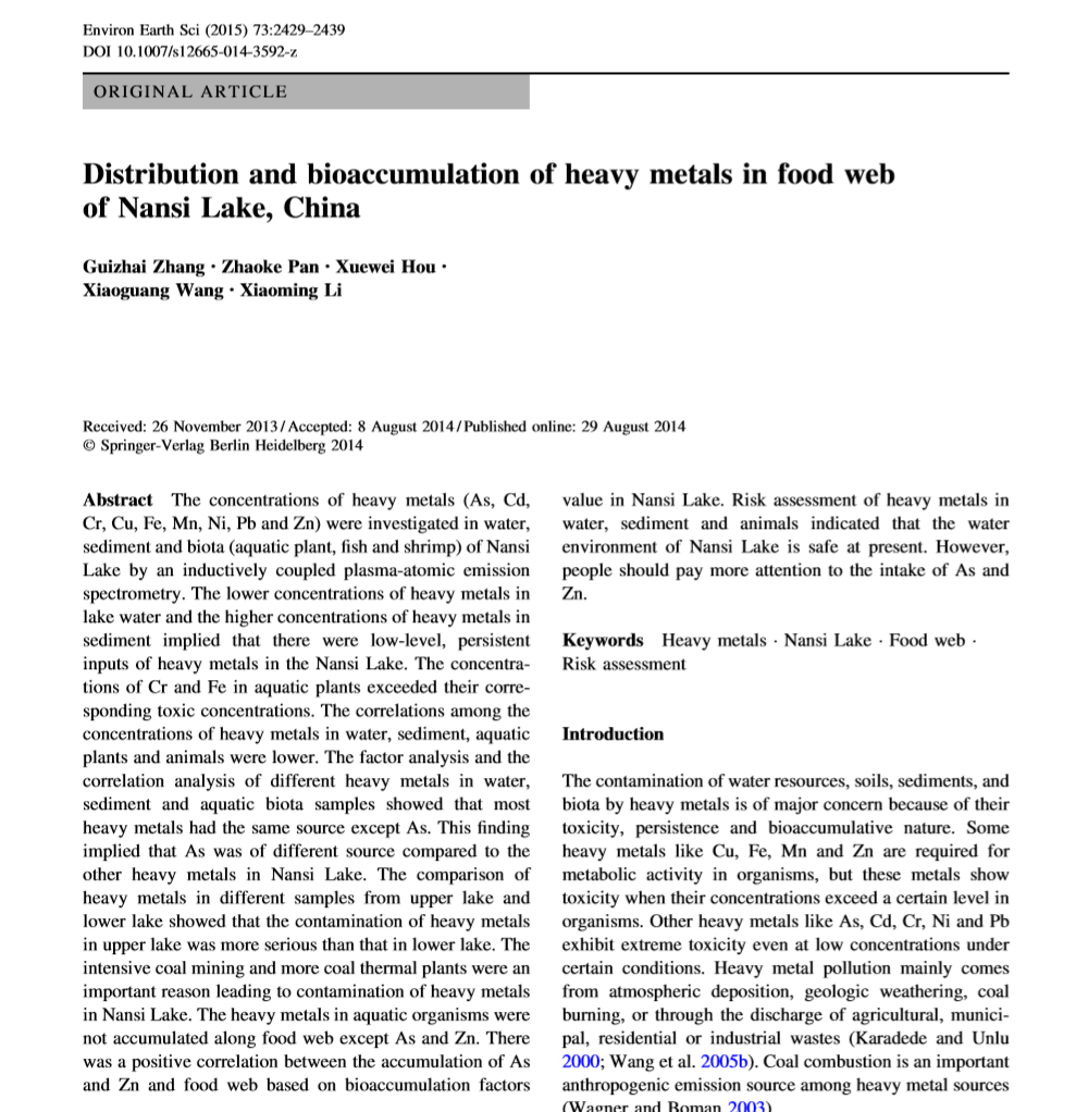 张桂斋老师的论文在Environmental Earth Sciences刊出(SCI)
