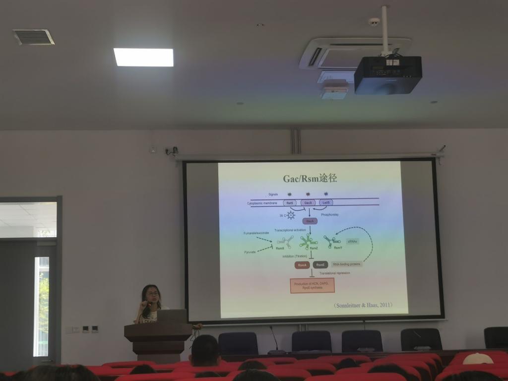 我院赵曌博士作《荧光假单胞菌中抗生素合成基因启动子及其调控因子的分析》讲座