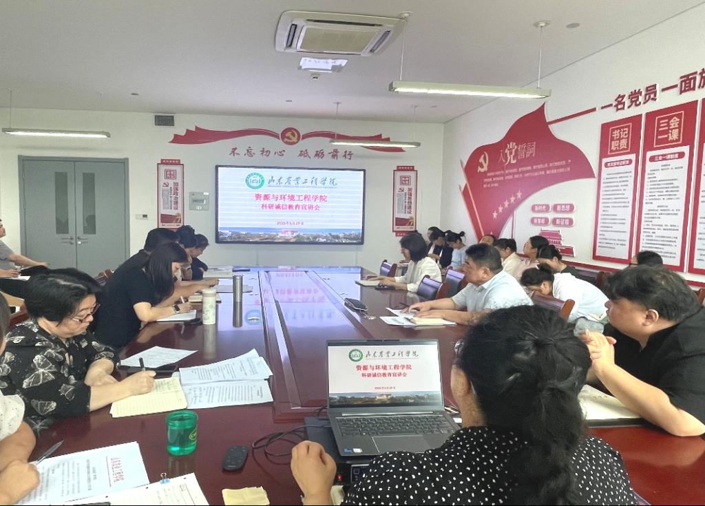 为大力弘扬新时代科学家精神,切实增强科研人员诚信意识,坚守科研诚信底线,营造风清气正的科研生态,2025年5月29日下午,资源与环境工程学院召开科研诚信专题会议,全面部署学院科研诚信活动月相关工作。会议由副院长江丽华主持,学院领导与全体教职工参会。