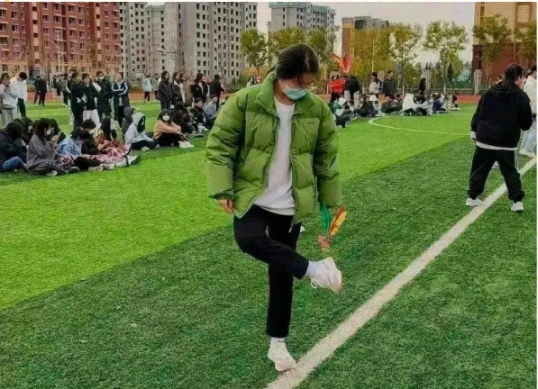 四周观众呐喊助威,有的惊呼嗟叹,有的掌声不断,有的欢笑连连。同学们高昂的热情点燃了热烈而又轻松愉快的现场气氛。