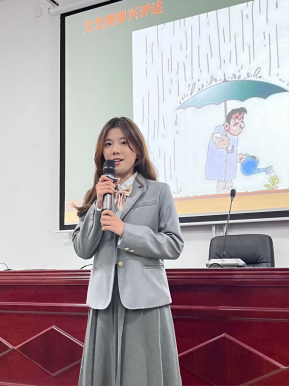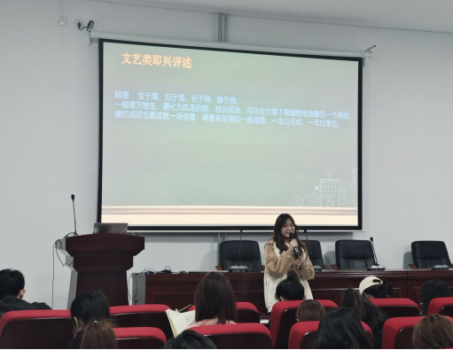 “用一只话筒挥斥方遒,让每份热爱尽显光芒。”14名选手经过初赛的激烈角逐进入半决赛,第一轮是新闻类选手进行稿件朗读比拼。比赛间歇,由郑欣怡同学献唱歌曲《化为孤岛的鲸》,为现场选手们舒缓压力。第二轮即兴评述环节,文艺类选手以及新闻类选手根据所抽取到的题目进行现场评论讲述。经过激烈的角逐,最终文艺类和新闻类各四名选手进入最终的模拟主持环节,选手们选取《朗读者》、《故事里的中国》、《共同关注》、《感动中国》等优秀的主持节目进行自备稿件的模拟主持。选手们用精心的准备与良好的现场表现能力将比赛的气氛推向了高潮。