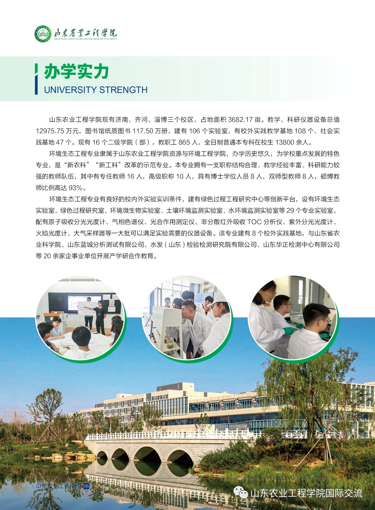 培养目标:本专业培养掌握生态环境方面的基本理论和知识,具备环境污染治理、生态监测与评价、环境生态工程设计、环境规划与管理能力,具有较强的跨文化交际能力和实践创新能力,能在农业、土地、环保、农资等部门或单位从事农业环境保护、环境工程设计、建设与管理的德智体美劳全面发展的国际化高素质应用型人才。
