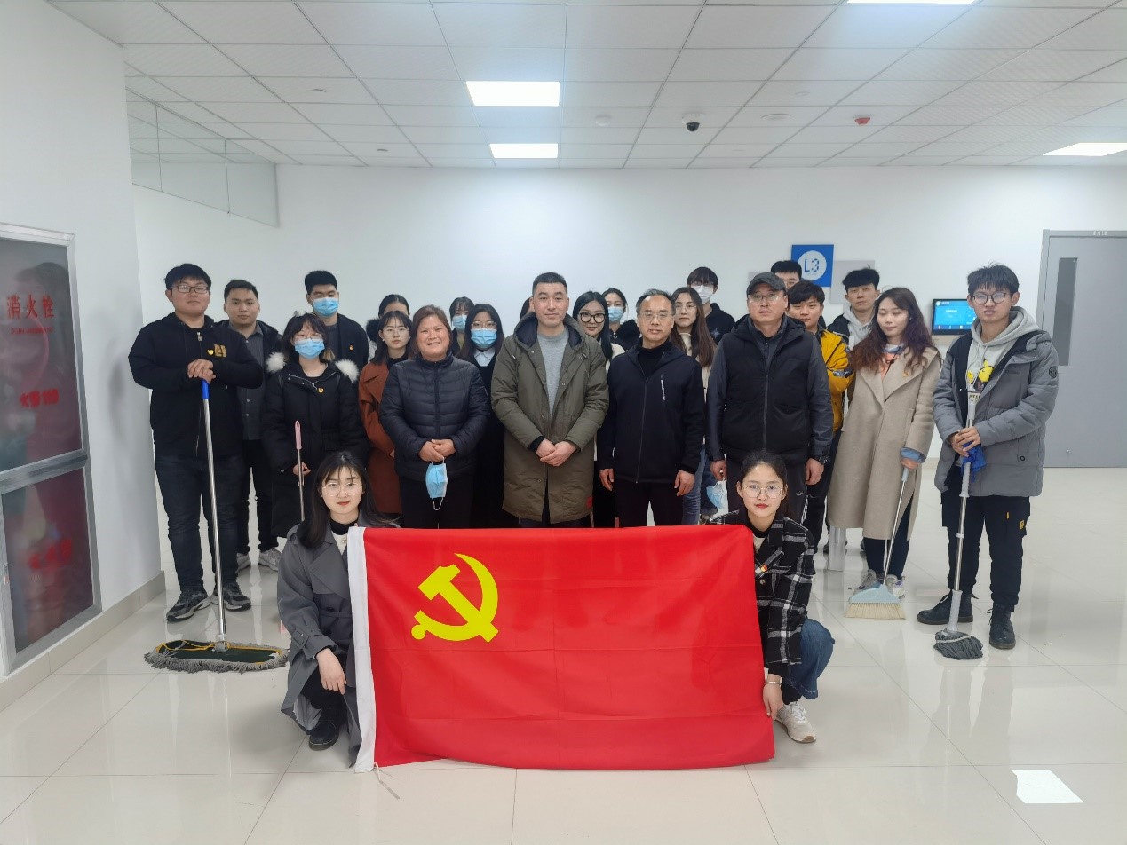 3月18日下午,我院党总支组织全体学生党员在淄博校区公教楼开展了师生共建美丽校园大扫除活动,我院党总支副书记郑业萌同志与全体大学生党员一起参加了活动。