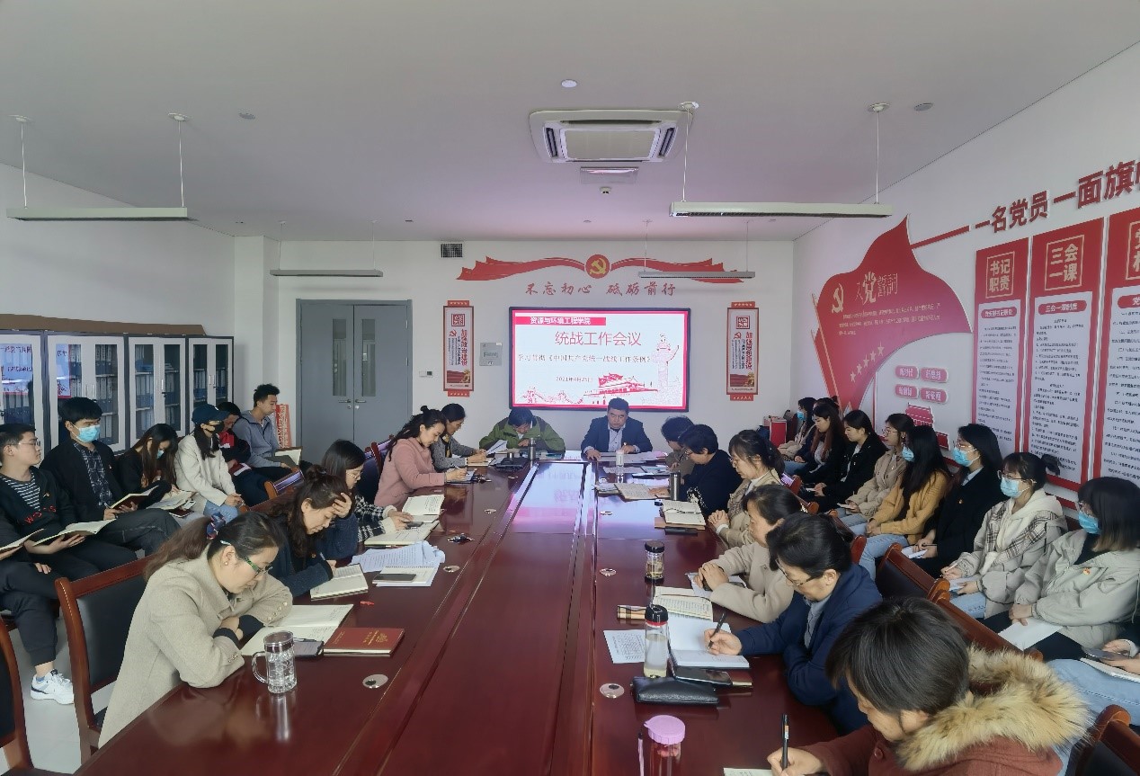 2021年4月25日下午,我院在淄博校区理工西楼党员活动室召开了学院统战工作会议,会议由我院党总支副书记马朝阳同志主持,我院全体党员及教职工参加了会议。