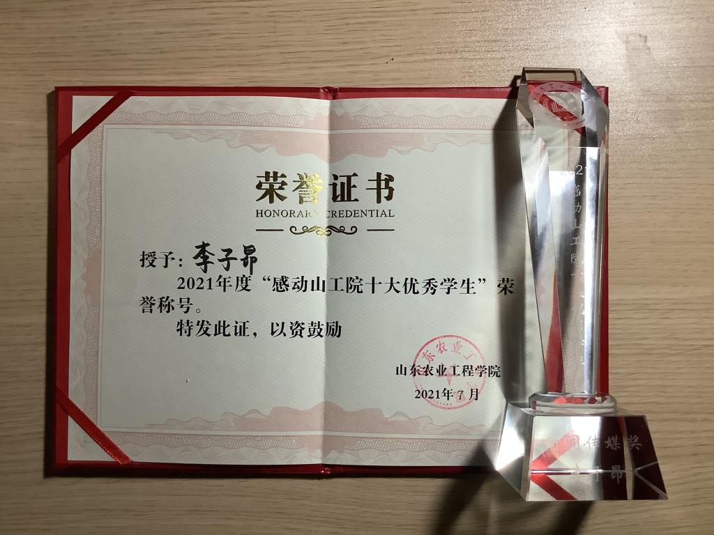 78日晚,必赢“2021·感动山工院十大优秀学生”颁奖典礼在学校齐河校区学术报告厅成功举办,我院2018级环境生态工程3班李子昂同学获得“新闻传媒奖”。