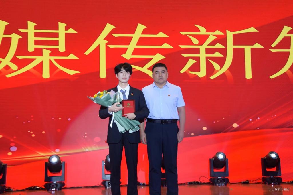 颁奖典礼上,李子昂同学以视频短片和座谈的形式向大家分享了自己的经历和感悟,激励山工院学子们奋发向上。我院党总支副书记马朝阳为李子昂同学颁发了荣誉证书和奖杯,对他寄予祝词,鼓励他不忘初心、砥砺前行,在未来的生活中继续发光发热,为党和国家事业的发展做出新的更大的贡献。