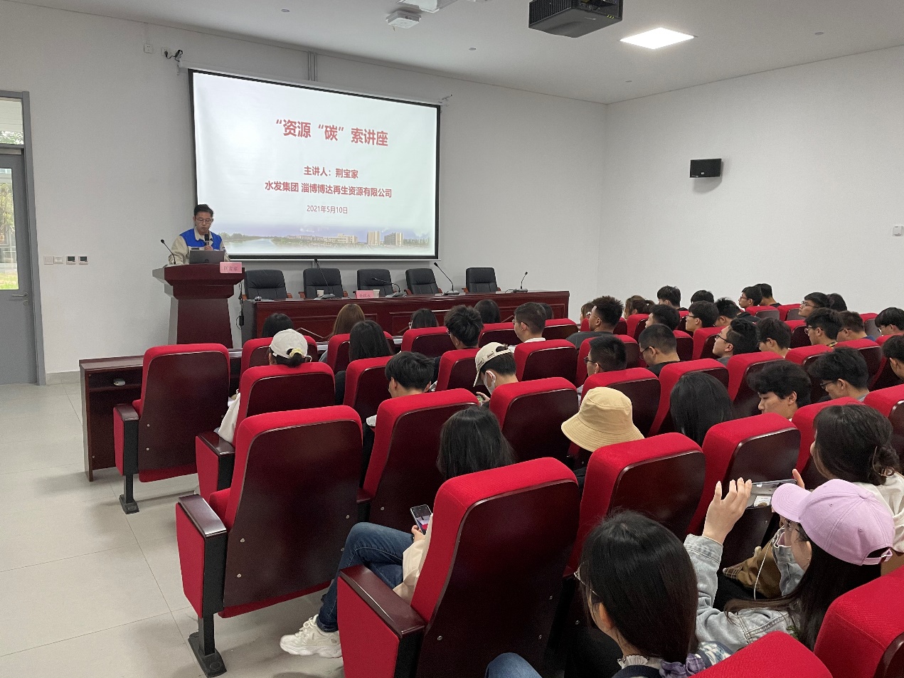 2021年5月10日上午,我院邀请水发集团•淄博博达再生资源有限公司垃圾分类宣传员荆宝家来校作题为《资源“碳”索》的环保讲座。来自19级资源循环科学与工程专业的同学们被荆老师那风趣幽默的话语、深入浅出的讲解所吸引,对报告主题的理解也更加深入。