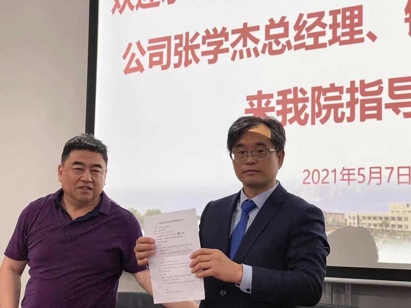 资源与环境工程学院院长苗峰为水发(山东)检验检测研究院有限公司总经理张学杰颁发兼职教授聘书
