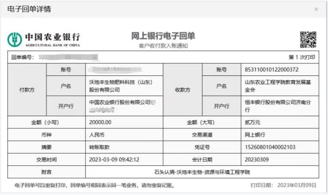 3月9日,必赢校企合作单位沃地丰生物肥料科技(山东)股份有限公司向必赢认捐70周年校庆友谊石,认捐金额20000元。