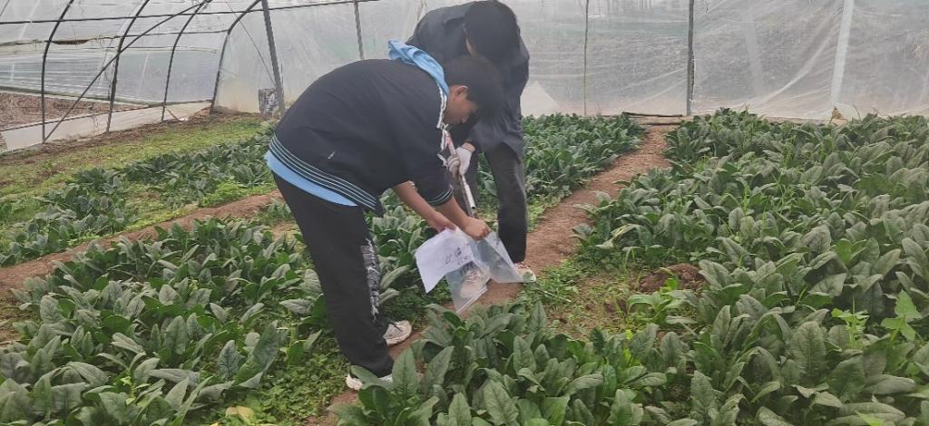 项目组成员严格按照科学规范的测产要求选取代表性的样点、仔细测量样点面积,认真测量菠菜的株高、径粗、叶绿素等指标,并对每一小区的菠菜称重,每一小区的土壤取样,全方位收集各项关键数据,整个过程严谨有序。