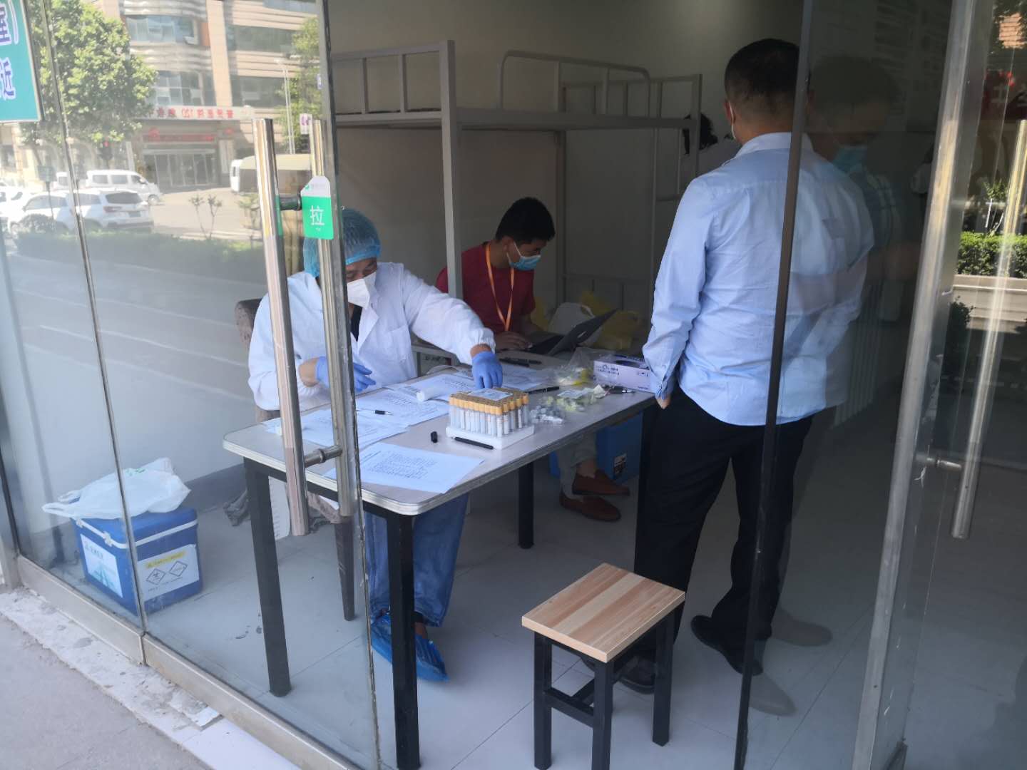 5月18日上午,学校后勤处组织六类人群教职员工开展核酸检测和血清抗体检测。监测点设于沿街楼一层15号临时留观点(室),后勤管理处处长高壮华和医疗服务中心温凯进行现场协助。检测分时段错峰进行,现场分为体温检测区、填表登记区、核酸采样区、血清抗体采样区、隔离等候区等,检测前对留观点(室)及周围进行彻底消毒。