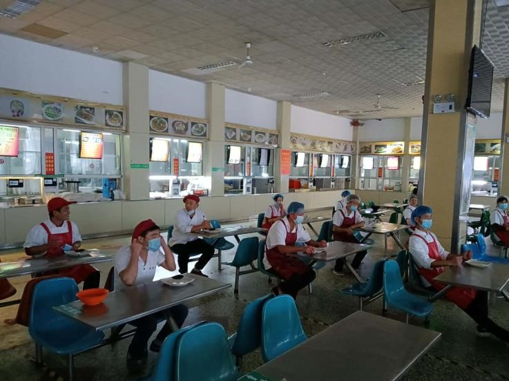 2020年10月19日下午,后勤管理处饮食服务中心组织食堂员工在餐厅开展食品安全教育和食品安全突发事件培训。传达秋季学期学校疫情常态化防控大排查工作内容及要点,要求餐饮公司和各窗口负责人提高思想认识,强化落实责任,按照学校疫情防控的指示精神,对照排查内容和要点,严密排查,要及时发现并整改消除安全隐患。会上,餐饮公司程宇经理对员工进行了食品安全突发事件应急处置的培训。