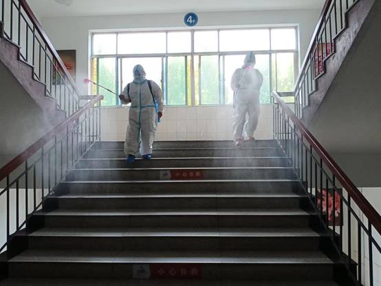 充分发挥物业公司的作用,加强大环境消杀。针对各类重点场所、重点区域进行全面环境卫生消杀,安排物业人员对所辖教室、卫生间、走廊、楼梯间、楼梯扶手等师生接触较多的公共区域以及道路、公共设施、垃圾箱、门、垃圾堆放点等地点进行消杀。