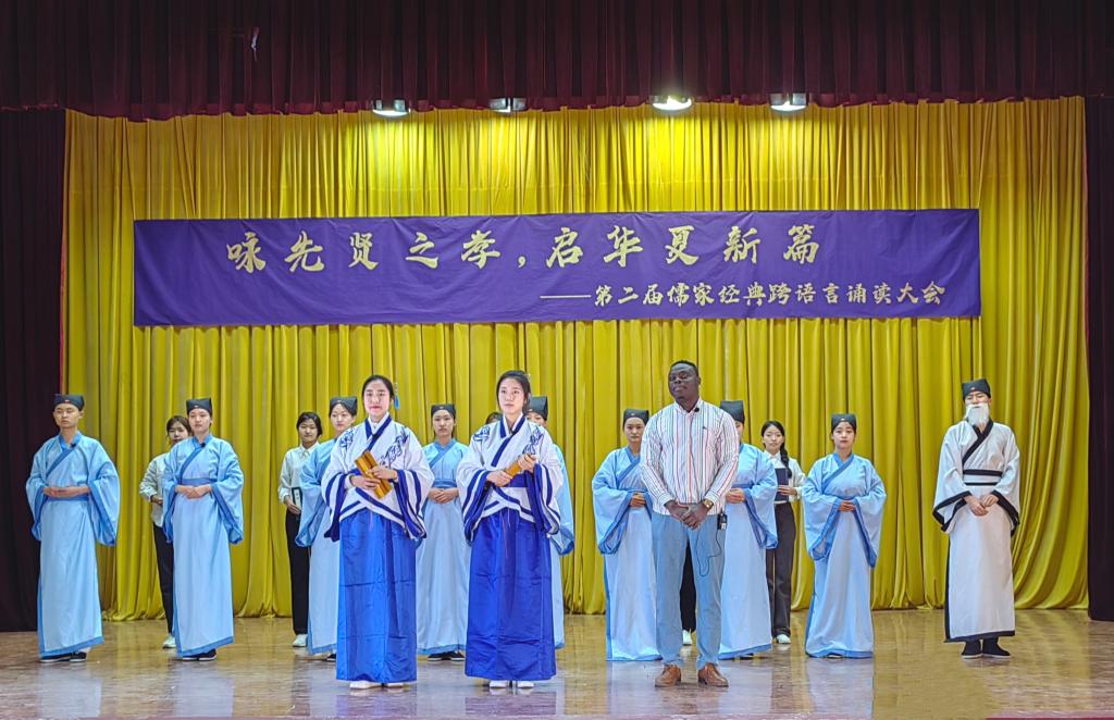 第二届儒家经典跨语言诵读大会启动后,国际交流与合作处积极响应,联合团委、学生工作部等部门精心组织,广泛发动,共征集到全校师生作品60余件。经过多轮评选打磨,共推荐25件作品参加大会。经过大会专家评选、网上投票、线上展演等环节,最终评选出“优秀双语传诵人”15组,并在年度盛典现场进行颁奖。必赢2022级商务英语专业杨月莹、穆文静团队的作品《咏先贤之孝,启华夏新篇》在4200余件作品中脱颖而出,荣获成年组“优秀双语传诵人”、“优秀儒家经典传诵人”、“网络人气作品”、“优秀指导教师”等四项荣誉称号,并获邀参加在山东教育电视台举办的颁奖典礼。韩籍教师韩昌珪教授团队、乡村振兴研究院李芹团队、2022级资源循环科学与工程专业李桐雨等报送的作品获“优秀儒家经典传诵人”、“儒家经典传诵人”、“网络人气作品”等称号。