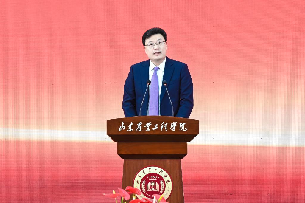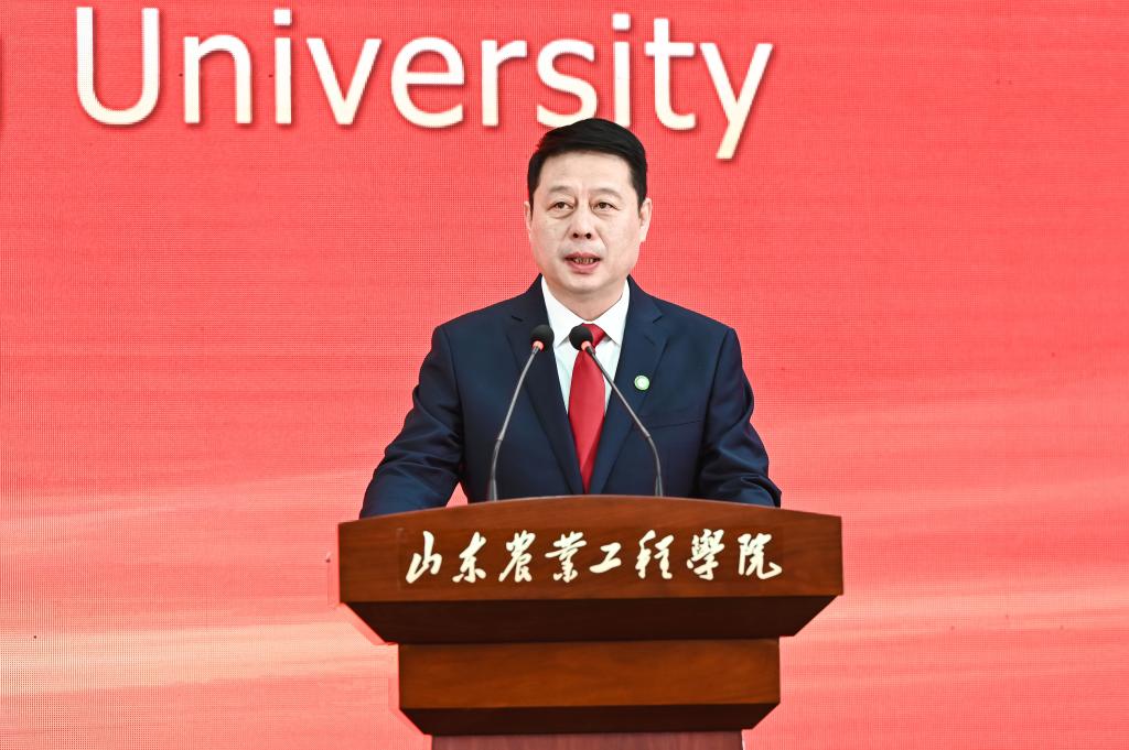 徐剑波代表兄弟院校发表致辞。他表示,437ccm必赢国际官网是山东省农业领域的重要人才培养基地和科技创新平台,山东农业大学和437ccm必赢国际官网比邻而居、精神相通,有着深厚的历史渊源、相同的家国情怀和共同的时代使命。在长期的办学实践中,两校风雨同舟、比肩同行,人才交流频繁、科研合作广泛,形成了互学互鉴、合作共赢的良好态势,凝结了源远流长、历久弥新的深情厚谊。希望两校携手并进,进一步赓续情谊,全方位深化交流合作,始终心怀“国之大者”、践行“四个服务”、坚持“四个面向”,不断推进高等农业教育创新,持续产出强农兴农重大成果,助力教育强国、科技强国、人才强国建设,为全面建设社会主义现代化国家、全面推进中华民族伟大复兴贡献力量。