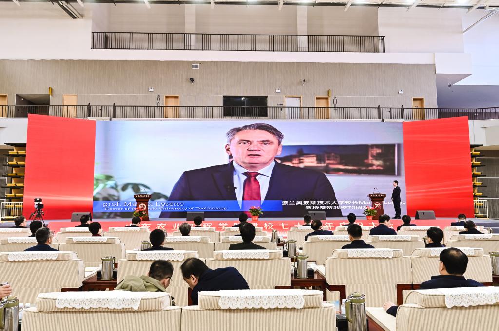 庆祝大会上,播放了国外友好学校代表——波兰奥波莱技术大学的祝贺视频,宣读了中国农业大学和山东大学向学校建校70周年发来的贺信。除此之外,中国海洋大学、湖南农业大学、东北林业大学、西南科技大学、南京农业大学、青岛理工大学等100余所国内外高校向学校发来贺信贺电。广大校友情系母校,纷纷通过不同方式关心关注校庆、支持学校发展,向母校70周年校庆表示热烈的祝贺,表达了美好的祝福。