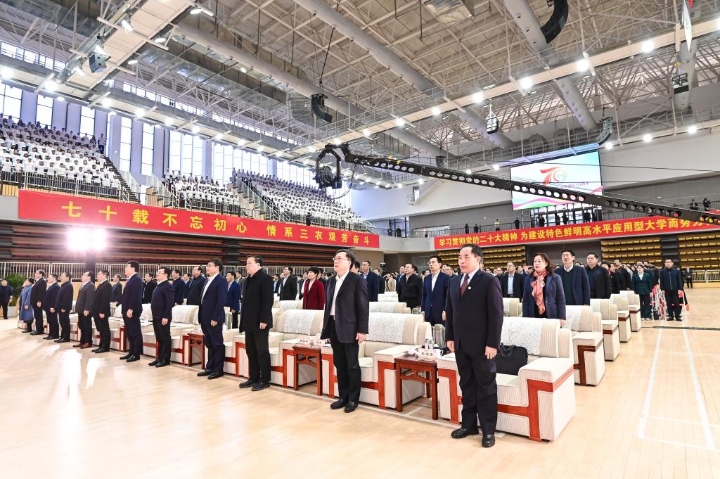 庆祝大会全程网络直播,全校师生员工、广大校友和所有关心学校发展的社会各界朋友相聚线上线下,共襄盛典、共话情谊,共同见证这一令人骄傲自豪和欢欣鼓舞的时刻,为学校70周年校庆送上最深情的祝福。