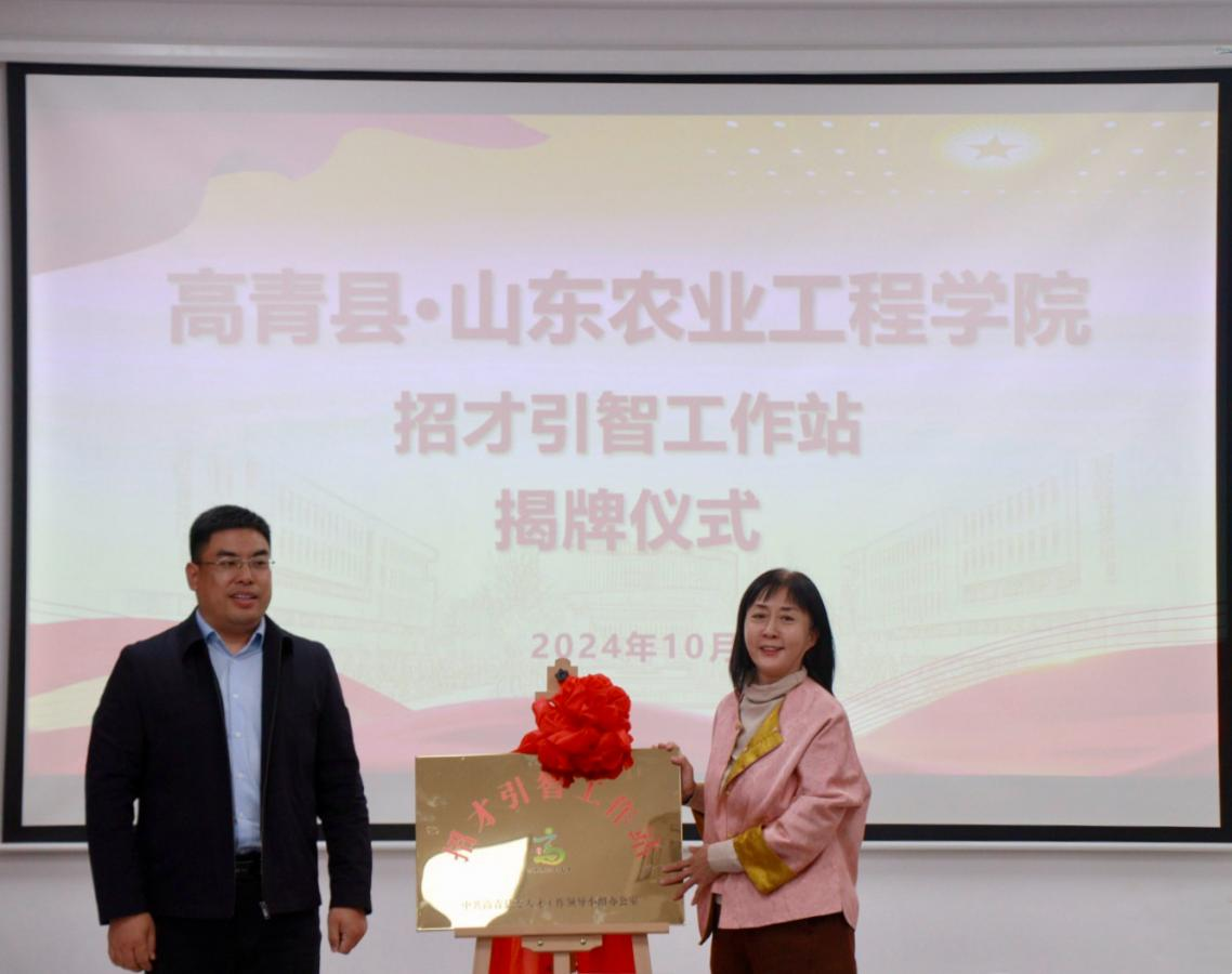 随后,共青团高青县委与校团委签订了校地融合助力高质量发展合作协议书。杨玖庆与郑祥军共同为“招才引智工作站”揭牌,标志着双方合作进入了一个新的阶段。