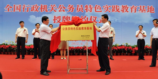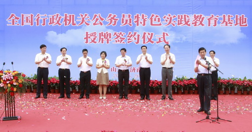 国家公务员局副局长杨春光、山东省副省长夏耕为公务员特色实践教育基地揭牌