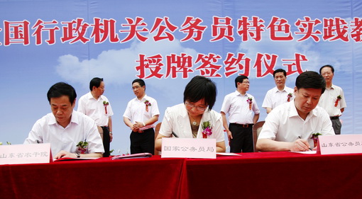 国家公务员局、山东省人社厅、省农干院共同签订了全国行政机关公务员特色实践教育基地合作协议。