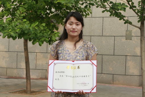 潘潇璇老师在工作中兢兢业业,勤勤恳恳,执着奉献,任专职辅导员时间里,一直驻守在北校区,以“学生的呼声就是工作的命令”,舍弃“小家”,为了“大家”,想方设法做好学生工作,为学生服好务,得到了学生的爱戴和拥护,也得到了同事的一致好评。曾在《中华诵·2011经典诵读大赛》山东赛区选拔赛中获得教师组三等奖,指导教师奖;撰写的论文《论高校学生突发性事件预防处置体系建设》获2011年度山东省高校学生教育与管理工作优秀科研成果一等奖,所带的班级中有2个班级被评为省级先进班集体;2011年校级优秀辅导员等荣誉。