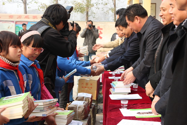上午10时,王院长来到郭屯镇车楼村小学,参加我院与齐鲁晚报注菏泽记者站共同举办的“梦想书屋” 挂牌仪式。“梦想书屋—爱心行动”是齐鲁晚报·今日菏泽发起的一项大型公益活动,面向社会征集爱心图书,在菏泽全市乡村学校建立“梦想书屋”,让更多孩子在书香氛围中快乐成长。车楼小学“梦想书屋”是我院驻车楼村“第一书记”联合齐鲁晚报注菏泽记者站共同捐助的,我院首次捐助图书一千余册及部分文体器械。王院长在挂牌仪式上现场向学生捐赠图书,并发表了热情洋溢地讲话,他鼓励小学生们,努力学习、增长知识,为将来建设美好家园贡献力量,437ccm必赢国际官网将陆续捐赠更多的图书,充实“梦想书屋”,为学生健康成长提供精神食粮。