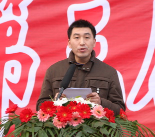学生处处长孙会海(左)主持仪式,院团委副书记、北校区学生处处长陈献锋(右)介绍文化节内容